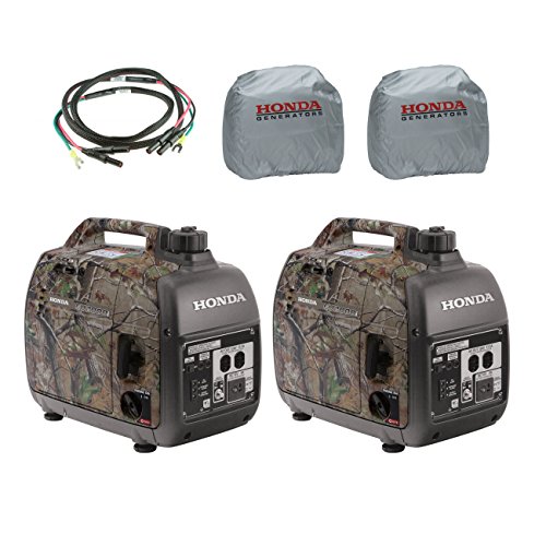 Honda (2) EU2000i 2000W Realtree Generator with Inverter, (2) Silver Cover, Cord
