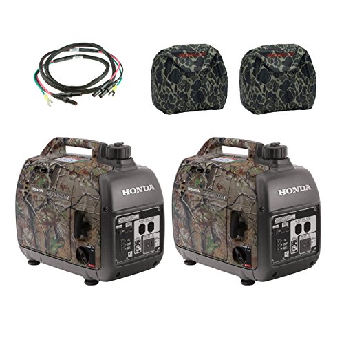 Honda (2) EU2000i 2000W Realtree Generator with Inverter, (2) Camo Cover, Cord